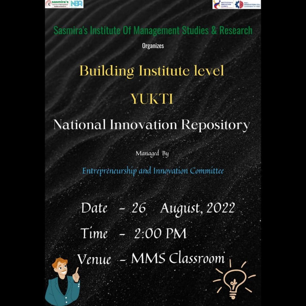 The Ministry of Human Resource Development (MHRD), Government of India has established ‘MHRD’s Innovation Cell (MIC)’ to systematically foster the culture of Innovation amongst all Higher Education Institutions. The primary mandate of MIC is to encourage, inspire and nurture young students by supporting them to work with new ideas and transform them into prototypes while they are informative years. MIC has envisioned positive creation of ‘Institution’s Innovation Council (IICs)’ across selected Higher Education Institutions. A network of these IICs is established to promote innovation in the Institution through multitudinous modes leading to an innovation promotion eco-system in the campuses. SIMSR is one of these institutions which established ‘The Institution’s Innovation Council’ in 2019.